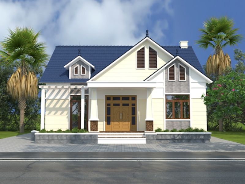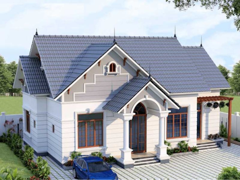 Kiểu nhà cấp 4 3PN kiểu biệt thự 3 mái