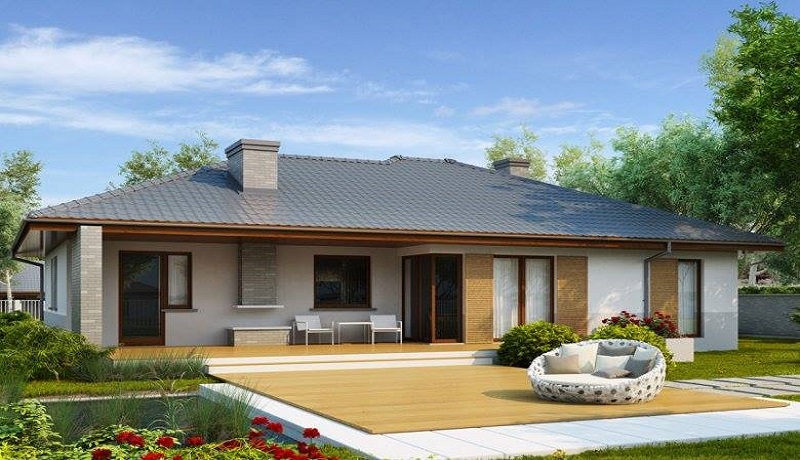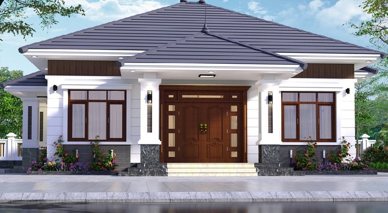 Một trong 8 mẫu nhà vườn đẹp 1 tầng đó là thiết kế nhà mái thái giật cấp. Thiết kế này khiến cho toàn bộ không gian nhà ở trở nên ấn tượng hơn. Mái thái giật cấp còn mang ý nghĩa phong thủy tốt đẹp, ngụ ý mong cho gia chủ ngày càng được thăng cấp trong công việc.