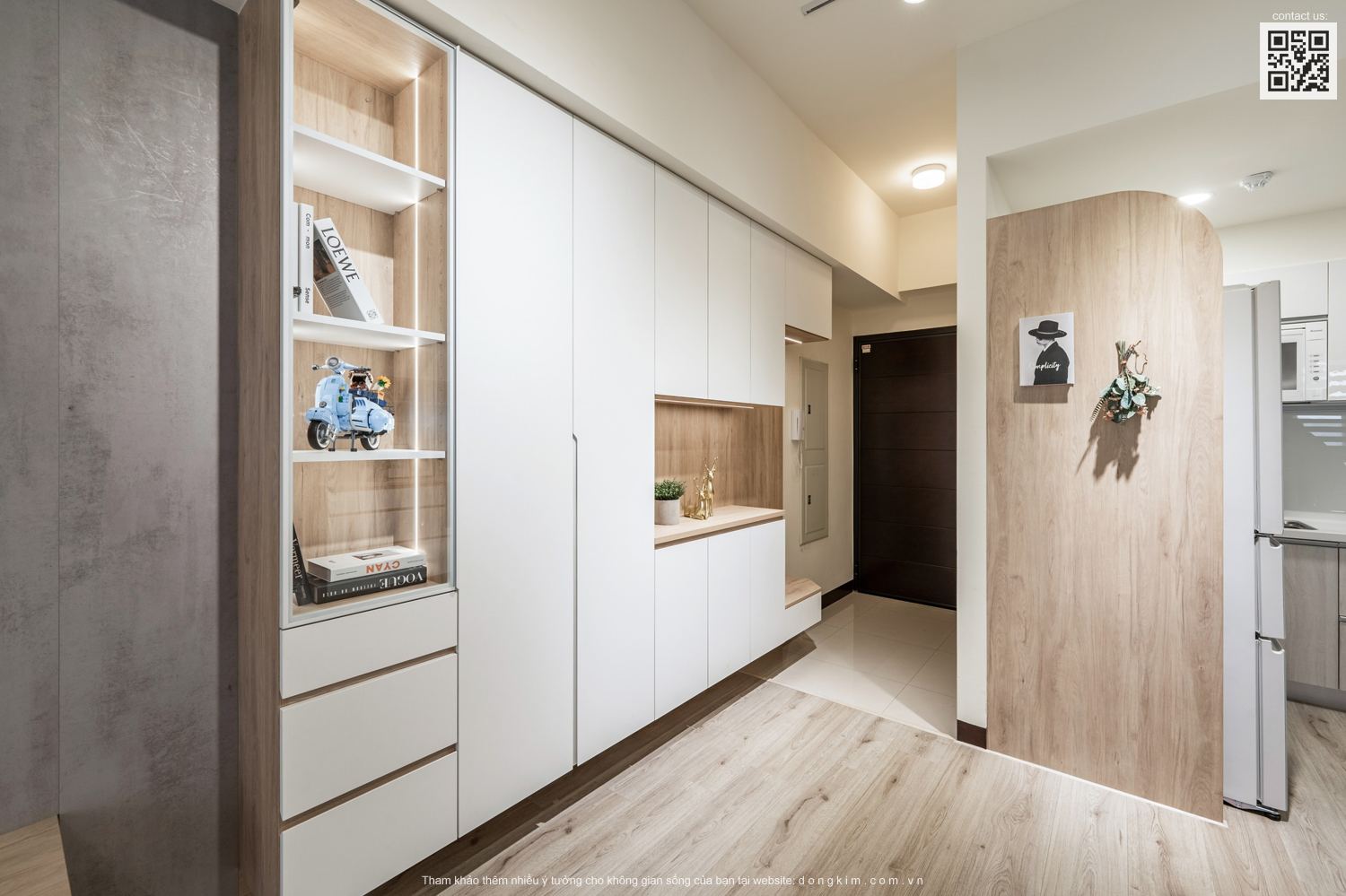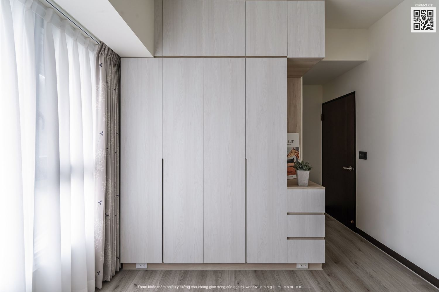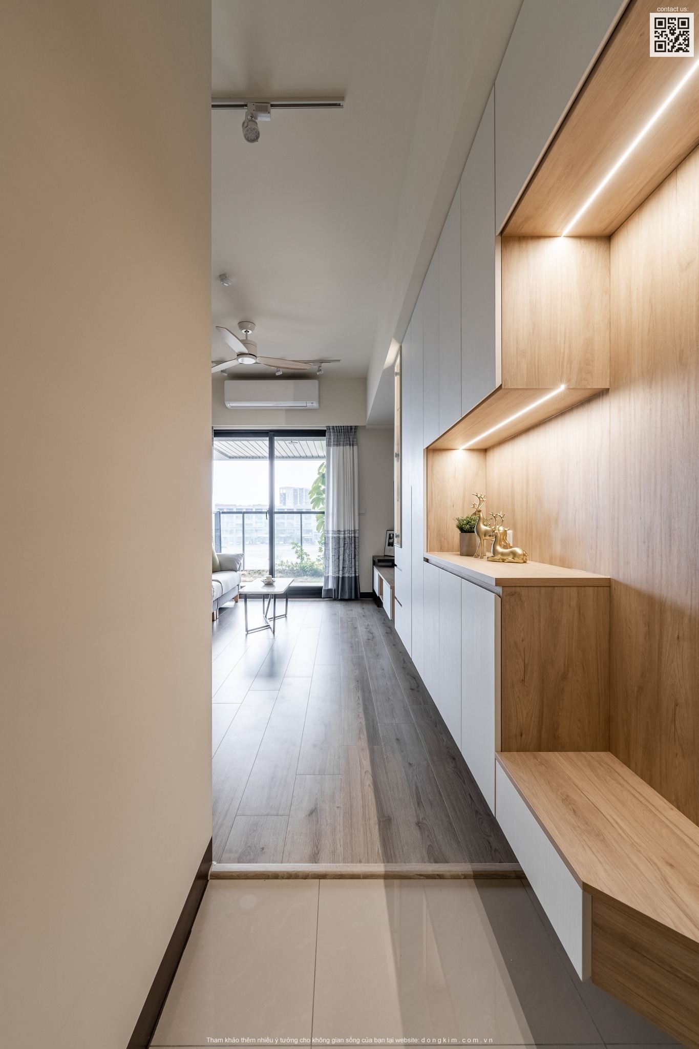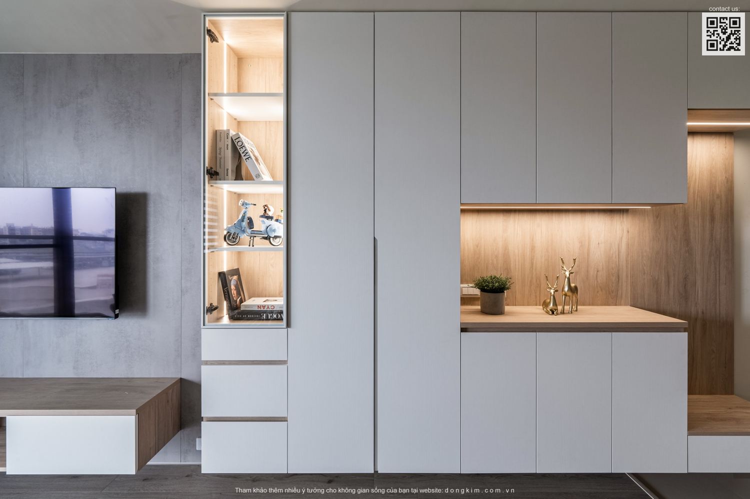 Với diện tích chỉ vỏn vẹn 45m2 thì việc bố trí nội thất sao cho đầy đủ nhưng vẫn đảm bảo sự rộng rãi, thoáng đãng là vấn đề được đặt ra cho các KTS. Do đó, nhằm tối ưu hóa diện tích cũng như mang đến một không gian sống thoải mái, tiện nghi và thời thượng Đồng Kim đã chọn lựa thiết kế nội thất theo phong cách hiện đại cho dự án căn hộ dịch vụ Cailey. Căn hộ lấy tone trắng chủ đạo kết hợp ánh sáng tự nhiên từ cửa kính lớn, điểm xuyết thêm tone màu xanh tươi mát vừa có tác dụng tạo hiệu ứng mở rộng không gian vừa tăng tính thư giãn cho người sử dụng.