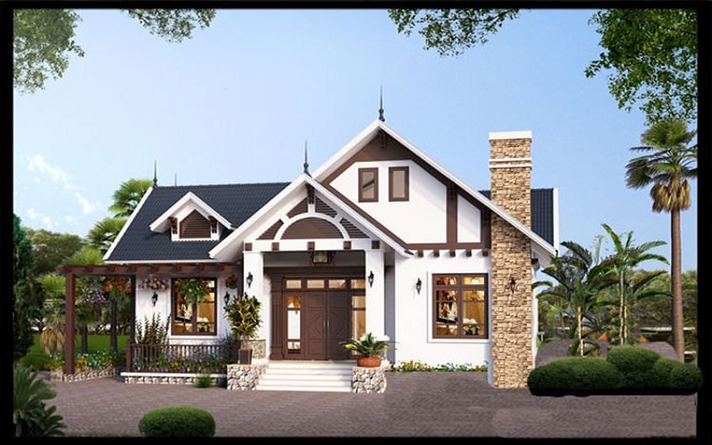 Phong cách thiết kế Châu Âu với ống khói bên trong nhà là nét thiết kế cực kỳ đặc trưng. Bạn sẽ chỉ bắt gặp những căn nhà có ống khói ở các quốc gia Phương Tây. Phía trước nhà được trang trí bằng nhiều chi tiết gỗ khiến cho căn nhà càng thêm nổi bật và sang trọng hơn.