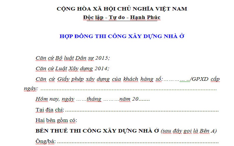 Hướng dẫn điền mẫu hợp đồng xây dựng nhà ở