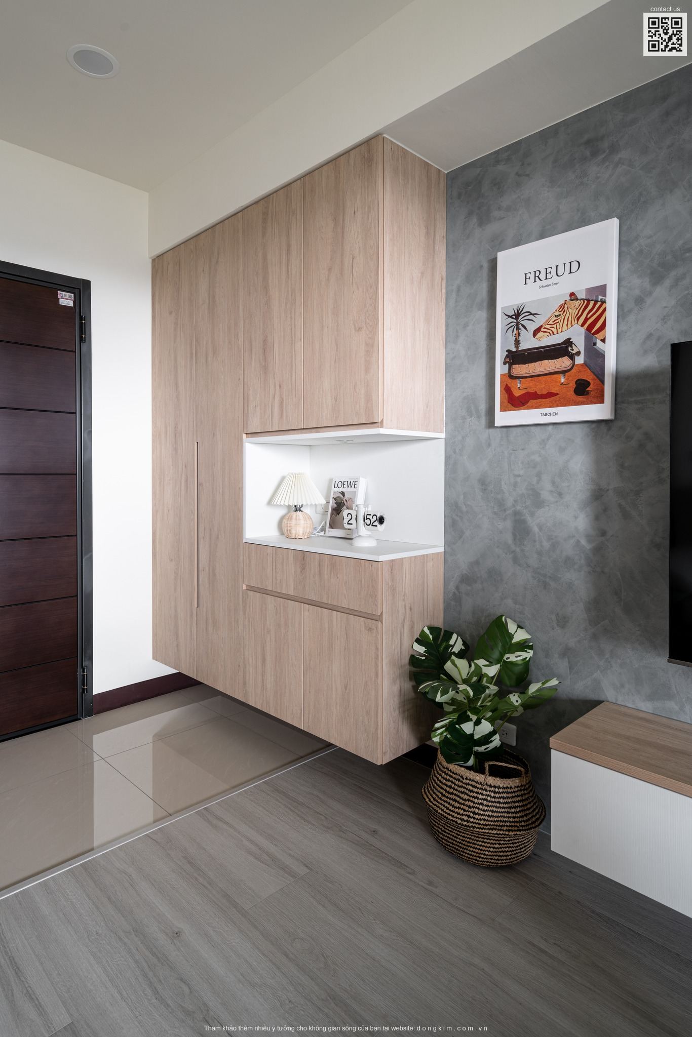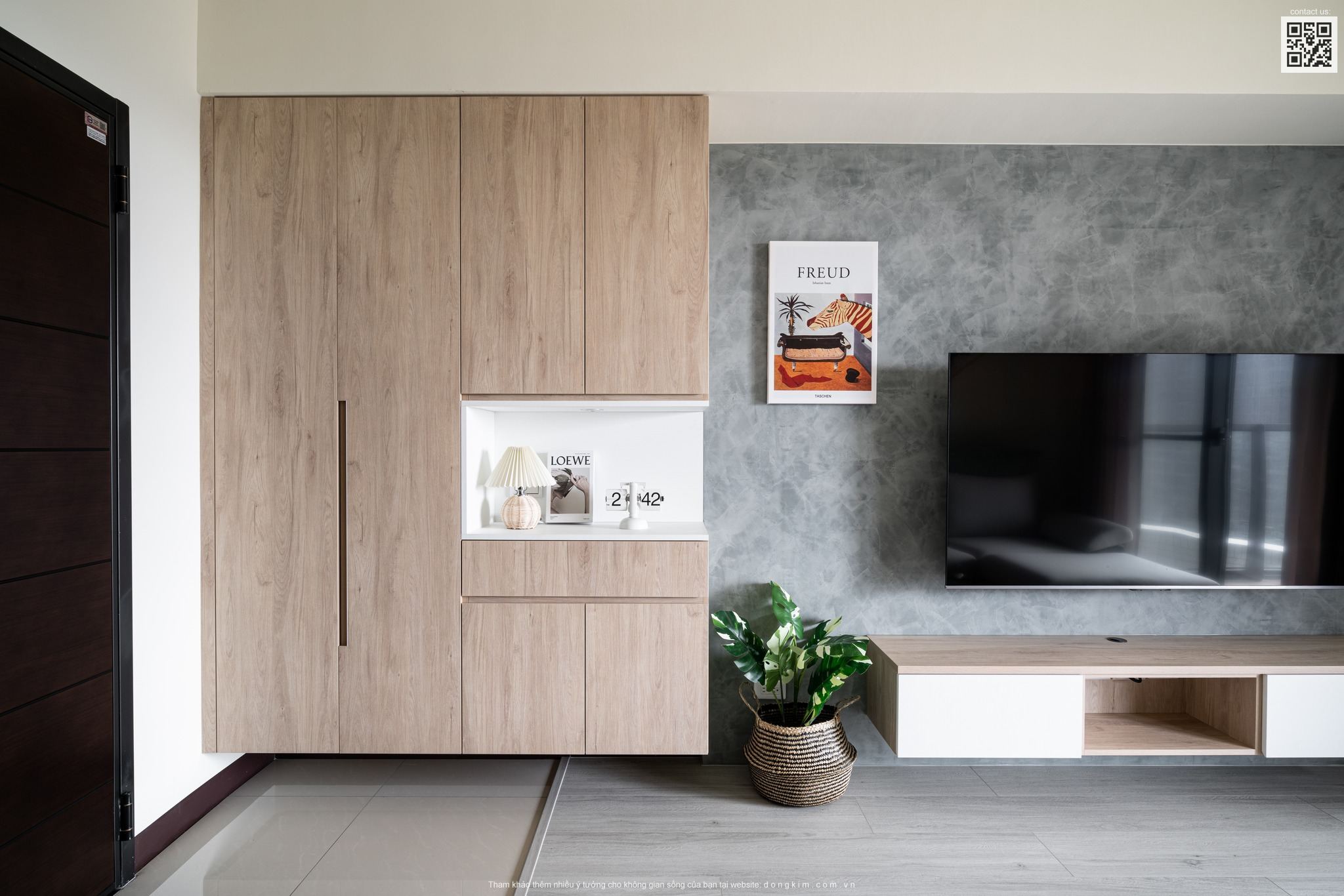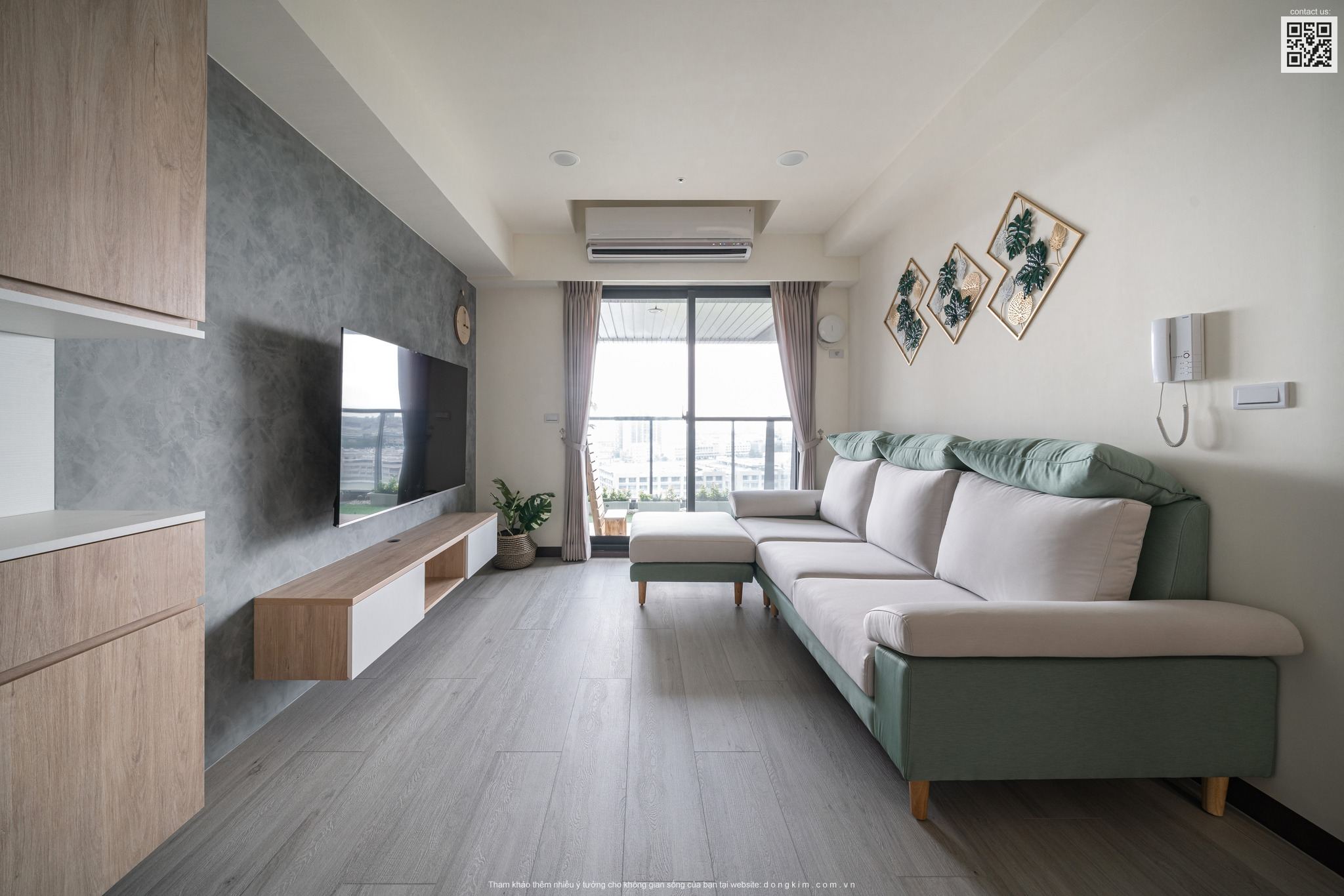 Một trong những phong cách thời thượng, xu hướng hiện nay và được sử dụng rất nhiều trong thiết kế nội thất từ chung cư, nhà phố, biệt thự cho đến khách sạn phải kể đến chính là phong cách hiện đại. Không chỉ mang đến giá trị thẩm mỹ cao cùng lối bố trí nội thất khoa học, tiện nghi thiết kế nội thất hiện đại còn đặc biệt phù hợp với những không gian nhỏ. Do đó, đến với dự án căn hộ dịch vụ 55m2 lần này Đồng Kim đã chọn lựa thiết kế theo phong cách hiện đại với tông màu trắng chủ đạo kết hợp với màu trầm ở phòng khách cùng nội thất gỗ mang đến một không gian tiện nghi và ấm cúng.
