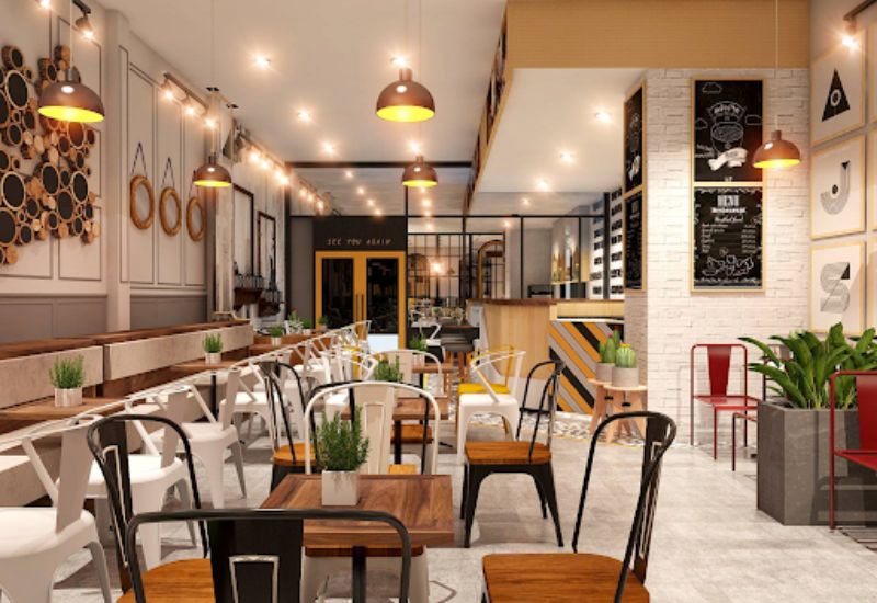 Mẫu 2: Quán trà sữa hiện đại ấm áp