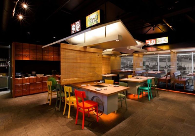 Mẫu tiệm đồ ăn kiểu Thái này ở Việt Nam khá thịnh hành. Bàn ăn thiết kế dạng đẩy có bánh xe, ghế nhựa đủ màu sắc. Phía trong quầy chế biến cách với khu khách ăn uống bằng những màn che bằng trúc lạ mắt.